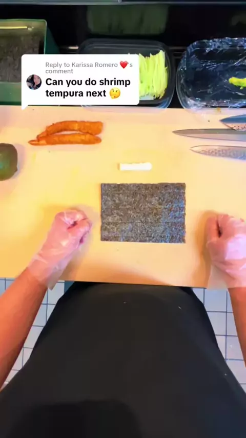 Respondendo a Romero ❤ ️ Este é o nosso tempura de camarão! # # sushi # howto # EUA # pov