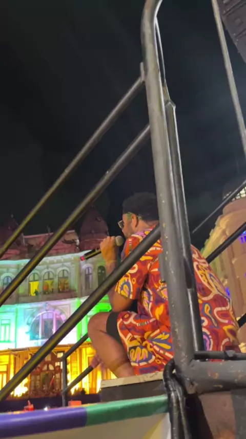 Estamos emocionados, @emicida ❤️ 🎥: Dondinho #VolteiRecife #PraCegoVer Vídeo de Emicida sentado nos degraus do palco do Marco Zero. Fim da descrição.