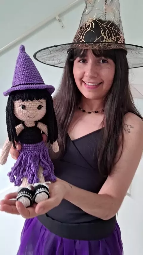 Eu e minha mascotinha desejamos um Feliz dia das Bruxas !! 🧙‍♀️ Que nesta data o feitiço vire contra os feiticeiros e que seu dia seja excelente! #PriArtsAmigurumi #diadasbruxas #haloween #felizdiadasbruxas #amigurumi