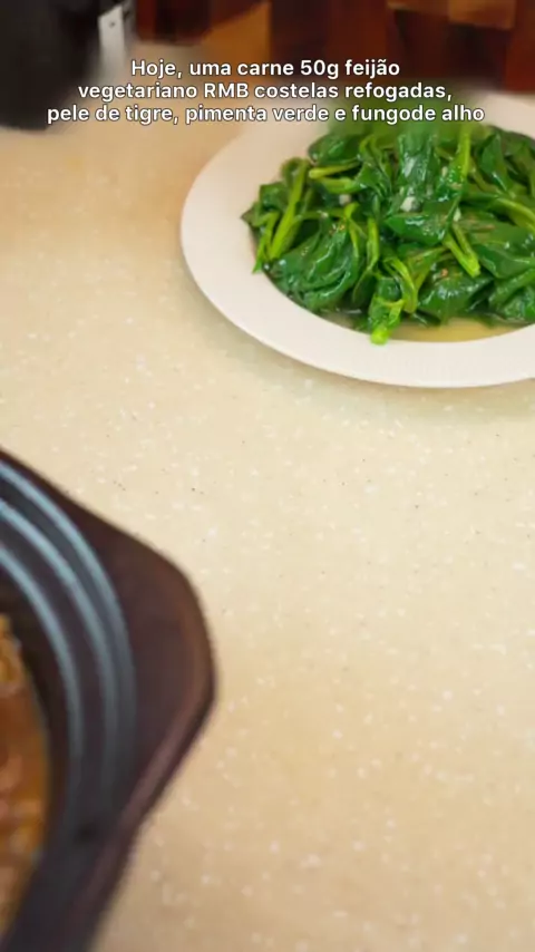 Hoje: Costelas refogadas com feijão RMB, pimenta verde e fungo de alho, todo sabor caseiro