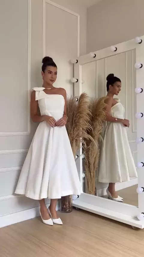 Vestido Midi com alça única para casamento. #vestidomidi #casamento