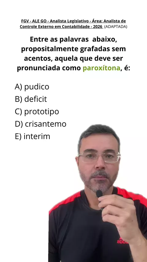 Português para Concursos | Acentuação Gráfica Você sabe identificar uma palavra paroxítona mesmo sem acento? Em provas de concurso, é muito comum a banca retirar os acentos das palavras para testar se o candidato sabe realmente reconhecer a sílaba tônica. E é exatamente isso que acontece nesta questão da FGV. Entre as palavras apresentadas, qual delas deve ser pronunciada como paroxítona? #português #fgv #portuguesparaconcursos #concurseiro #aprender