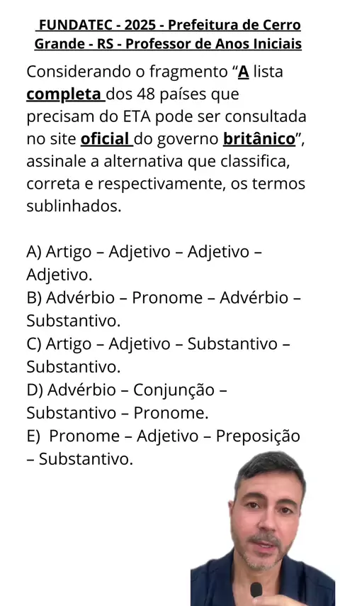 Português para Concurso | Classes gramaticais de palavras Quer gabaritar questões de concurso sobre classes de palavras? Neste Reels eu ensino de forma simples como resolver esse tipo de questão! Aprenda a identificar substantivos, adjetivos, artigos em uma frase. 👉 Venha conhecer meu curso Português do Zero e domine a gramática de uma vez por todas! #concurso #português #estudos #dicas #aprender