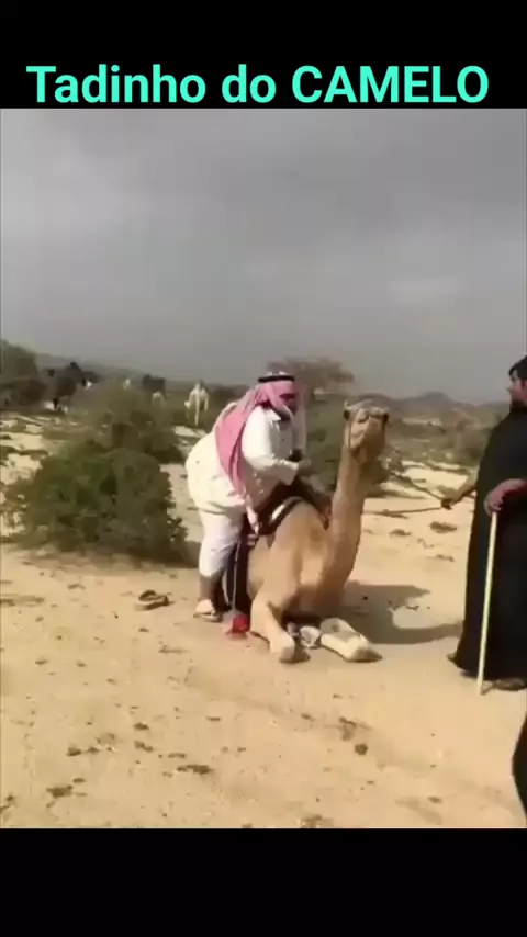 Coitado do Camelo - O animal não suportou o peso do homem e caiu com ele. #humor #camelo #arabe #familiaabasedaamizade #mundoanimal