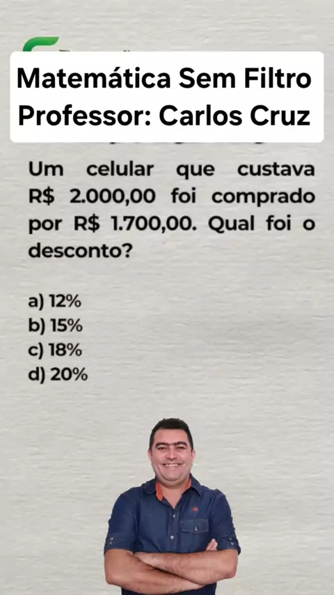 Professor Carlos Cruz Matemática Sem Filtro. https://youtube.com/c/ProfessorCarlosCruz