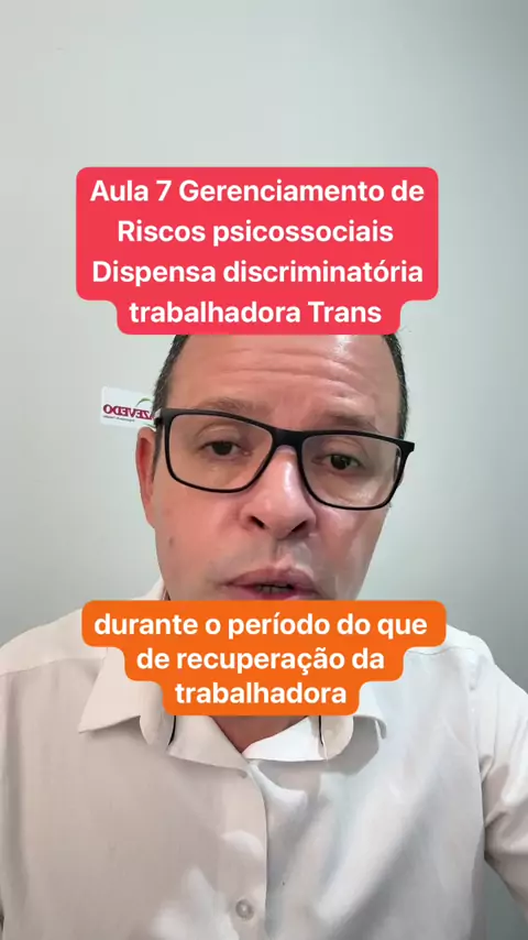 Aula 7 gerenciamento de riscos psicossociais, dispensa discriminatória trabalhadora Trans , implantação do gerenciamento de riscos psicossociais na sua empresa #riscospsicossociais #dispensadiscriminatória #trabalhadoratrans #assediomoral #segurancadotrabalho Saiba mais https://azevedoconsultoria.com.br/
