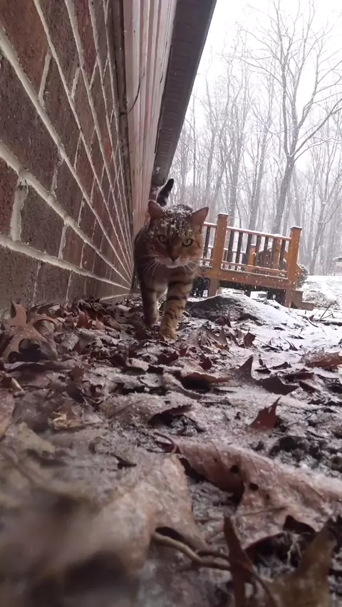 Fresh falling snow is Pouncey's favorite ❄️❄️❄️ #snowcat #adventurecat #amaKwai