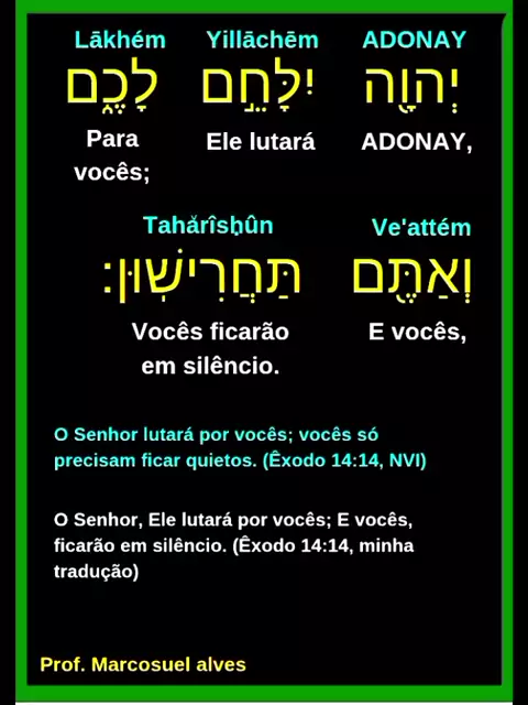 o Senhor lutará por vós, e vós calareis. Êxodo 14:14
