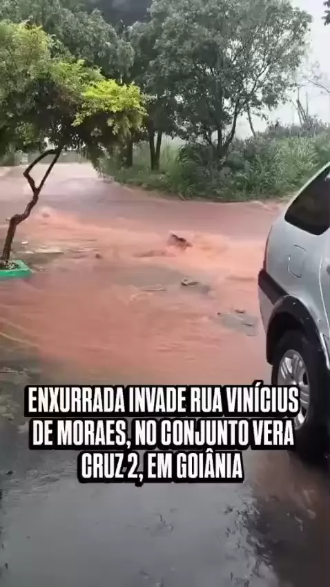 Moradores da Rua Léo Lynce, no Conjunto Vera Cruz 2, região oeste de Goiânia, tiveram que colocar os carros nas calçadas por causa da enxurrada que tomou conta da rua. #status #noticias #kawaii