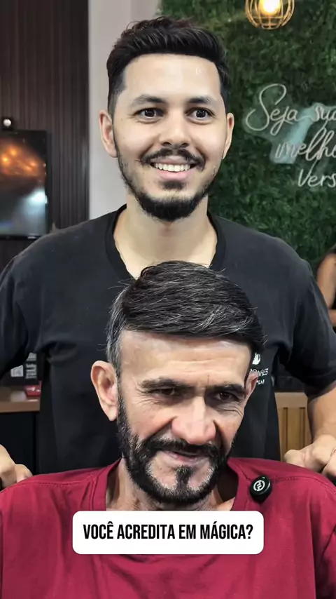 Tentamos a mágica… na primeira, falhou feio 🤡 Na segunda… o homem saiu até diferente 😳😂 Tem coisa que não é truque não, é transformação de verdade! #protesecapilar #transformacao #antesedepois #humor #viral
