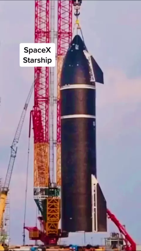 SpaceX Starship totalmente empilhado - o foguete será usado para enviar seres humanos a Marte # elonmusk # SpaceX # starship # NASA # astronomy # mars # space