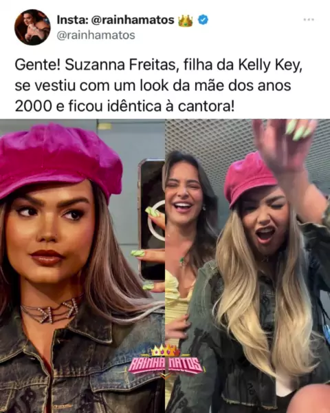 E Suzanna Freitas, filha da Kelly Key, que vestiu um look da mãe dos anos 2000 e ficou igualzinha à cantora! Vocês também acharam parecidas? 📸 reprodução: Instagram 🦋