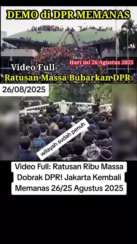 Video Full: Ratusan Ribu Massa Dobrak DPR! Jakarta Kembali Memanas 26/25 Agustus 2025____#Jakarta #DemoJakarta #DPR #AksiMassa #BreakingNews #JakartaUpdate #IndonesiaNews #ViralVideo #JakartaHariIni #BreakingJakarta #MassaAksi #NewsUpdate #BeritaHariIni #JakartaMemanas #IndonesiaUpdate