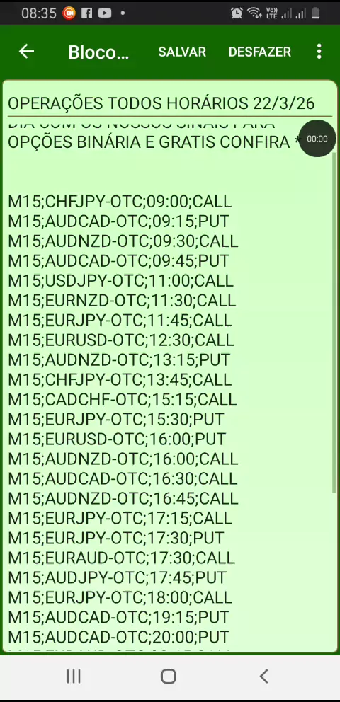 OPERAÇÕES EM TODOS HORÁRIOS DIA 22/03/26 A LISTA DE SINAIS ESTARA NOS COMENTÁRIOS