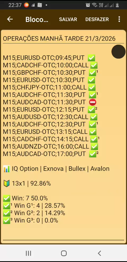 RESULTADO DAS OPERAÇÕES EM M15 DIA 21/03/26 OS LINKS PARA A ABRIR A CONTA NAS CORRETORAS ESTÃO NOS COMENTÁRIOS
