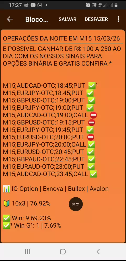 RESULTADO DAS OPERAÇÕES EM M15 DIA 15/03/26 OS LINKS PARA A ABRIR A CONTA NAS CORRETORAS ESTÃO NOS COMENTÁRIOS