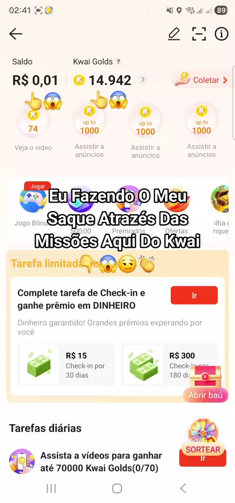 Eu 😱👆Fazendo O Meu Saque Atrazés Das Missões Aqui Do Kwai 👇😱😏👏