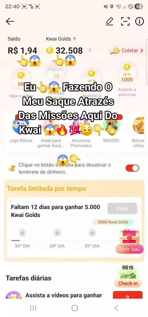 Eu👆😱 Fazendo O Meu Saque Atrazés Das Missões Aqui Do Kwai 😱🔥💯😏👇👏