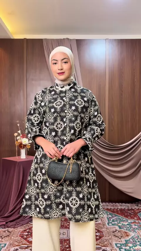 Jenna tunik warna hitamnya cantik lhoo bisa untuk halal bi halal nanti juga 👀🩶 #richdept #bajulebaran #outfitlebaran #tunik #bajuramadhan