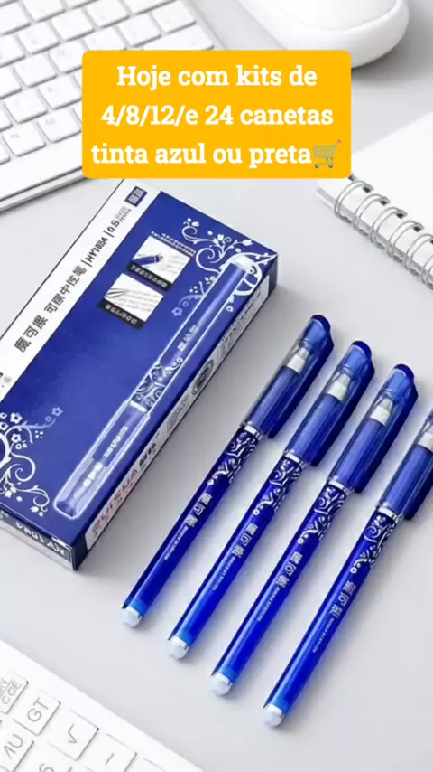 Kits canetas azul ou preta 4/8/12/24 canetas apagável 🛒 #canetas #shopkwai #foryou