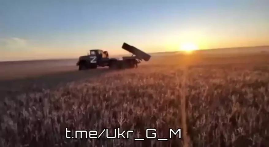 Trabalho de combate da tripulação do BM-21 Grad MLRS contra as posições de militares das Forças Armadas Ucranianas na área do Distrito Militar Norte.