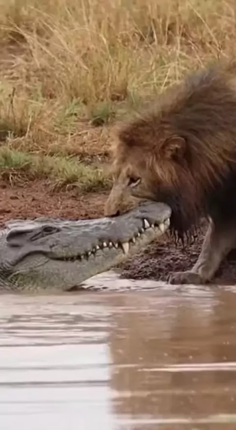 Na selva, até os reis enfrentam desafios inesperados. 🦁🔥🐊 #NaturezaSelvagem #ReiDaSelva #BatalhaAnimal #VidaNaSelva #InstintoAnimal