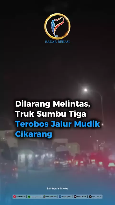 Truk sumbu tiga tetap nekat melintas di jalur arteri Jalan Imam Bonjol, Cikarang Barat, Kabupaten Bekasi, saat periode arus mudik Lebaran, Selasa (17/3) malam. Keberadaan kendaraan besar tersebut memakan badan jalan sehingga menyebabkan arus lalu lintas di jalur mudik tersendat. Diketahui, truk sumbu tiga atau lebih dilarang beroperasi selama masa angkutan Lebaran 2026 pada 13–29 Maret, sesuai SKB Kementerian Perhubungan, Korlantas Polri, dan Kementerian PUPR. Larangan ini mencakup mobil barang...