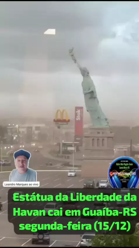 📢 Rádio Web Região Oeste Santa Maria Informa 🚨 Viral nas Redes: Estátua da Liberdade da Havan cai em Guaíba-RS! Um vídeo que circula nas redes sociais mostra o exato momento em que a estátua das lojas Havan, em Guaíba/RS, foi derrubada durante o temporal desta segunda-feira (15/12). 🌪 Os fortes ventos que atingiram a região durante a tarde causaram diversos estragos, e a queda da réplica da Estátua da Liberdade chamou a atenção pela força do impacto. ⚠ Não há informações de feridos a