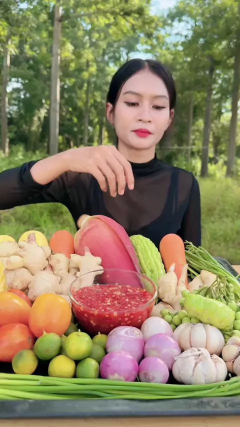 Eating yummy fresh vegetable with chili sauce #eating #mukbang #reelsvideoシ