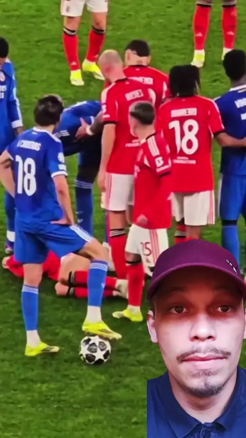 o Mbappé e o Vini jr provocaram o jogador do Benfica enquanto ele estava no chão! #Mbappé #vinijr #provocação #Champions #moleque