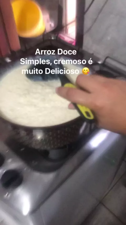Arroz Doce simples e cremoso 😋. Cozinhar 3 xícaras de arroz até secar a água. Acrescentar 1 litro de leite ou a quantidade que preferir. Acrescente 1 caixinha de leite condensado. 1 caixinha de creme de Leite e 1 xícara bem cheia de Leite Ninho ou qualquer outra marca de leite em pó. 😘😘