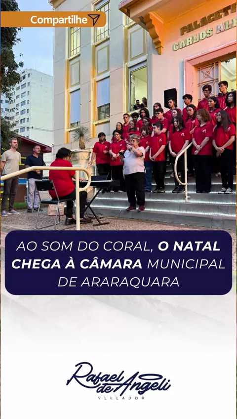 Encerramos o expediente desta segunda com uma linda apresentação do coral do maestro Rogério Toledo, que emocionou servidores, visitantes e até quem passava pela rua. 🎶🎄 Foi um momento muito especial para abrir oficialmente as celebrações de Natal na Câmara, que já está toda decorada para este mês tão querido por nós. Que dezembro venha com esperança, luz e união! ✨ 🏷️ #natal #climanatalino #dezembro #araraquara #feliznatal