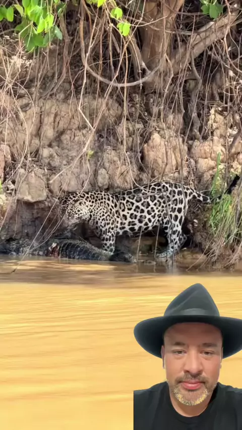 Onça predando um jacaré e brigando com as piranhas ! #onça #jacare #pantanal