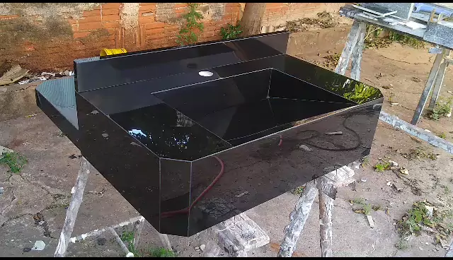 lavatório cuba esculpida feito no porcelanato preto #porcelanato #ARQUITETO💙 #construção #fyp #videos