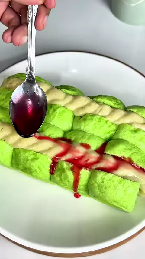 Resep Roti Kukus Pisang Ijo pecinta pisang ijo wajib banget cobain menu special Ramadhan @Roti Maros Karaengta yang satu ini Bahan : 100 ml air 1 sdm gula pasir 1/2 sdm ragi instan 1 sdt pandan pasta 250 g tepung terigu 20 g margarin 1 btr telur larutan ragi Pelengkap : Pisang raja Fla Sirup pisang ambon