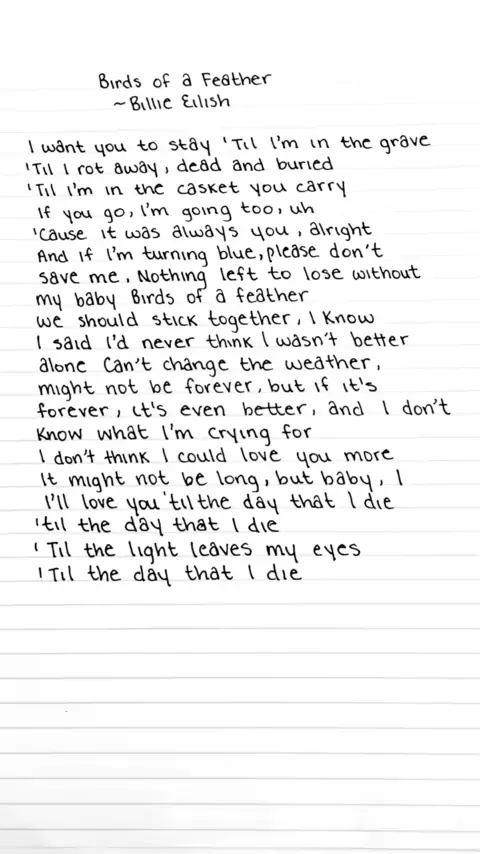 Aproveite a versão mais longa de Birds of a Feather por Billie Eilish # birdsofafeather # billieeilish # lyrics # handwriting # duet # karaoke # # # page # viral # singalong # music # sing Créditos: Karaoke