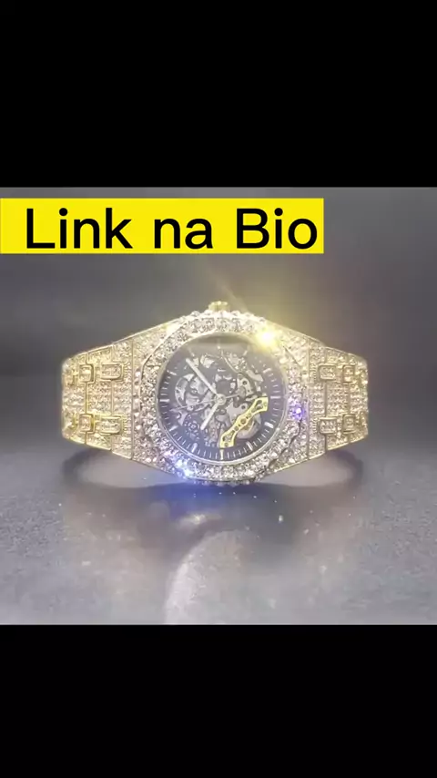 Relógio mecânico automático masculino Dourado com caixa de 44 milimetros, Marca Miss Fox, à prova de água, cravejado com pedras. Todos esses produtos estão no link da bio, nos ajude a trazer mais produtos para vocês, sigam o nosso instagram. #relogios #relogio #relogiodeluxo #relogiosmasculinos #cravejado