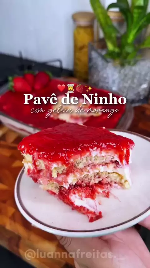 Pavê de ninho com geleia de morango 🍓 Ingredientes: 1 leite condensado 1 creme de leite 3 colheres de leite ninho Chocolate branco a gosto 200ml de chantilly 400g de morango 150ml de água 3 colheres de açúcar Biscoito champagne a gosto #Vem2026NoKwai #Receita #viral #fyp #kwai