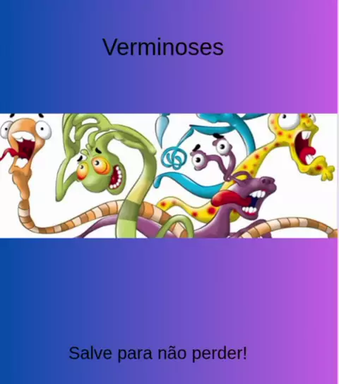 Verminoses são doenças causadas por vermes parasitas que vivem no intestino ou em outros órgãos do corpo humano. São muito comuns em locais com saneamento básico precário 🚿❌. 🦠 Principais tipos de verminoses Ascaridíase – Ascaris lumbricoides Oxiurose (Enterobíase) – Enterobius vermicularis Ancilostomíase (Amarelão) – Ancylostoma / Necator Teníase – Taenia solium e Taenia saginata Esquistossomose – Schistosoma mansoni #verminoses