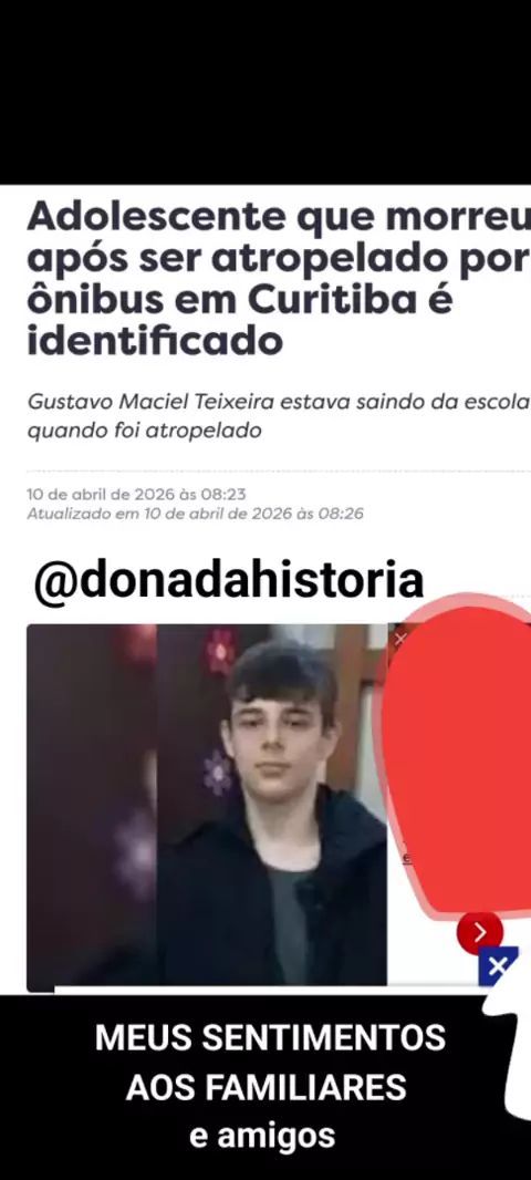 ADOLESCENTE MORREU AO SER ATINGIDO POR UM ÔNIBUS 🚍🚌 NA CANALETA , GUSTAVO MARCIEL TEIXEIRA TINHA TEM 17 ANOS ESTA SIBRE UM CURSINHO NA ESCOLA. QUANDO O ÔNIBUS 🚍🚌 ATUNGIU ELE VRIO A ÓBITO. MÃE FALA QUE É A PRIMEIRA VEZ QUE SOLTA ELE SOZINHO . LAMENTAMOS ESSA PERDA INSEPARÁVEL. MEUS SINCEROS PÊSAMES MEUS SENTIMENTOS AOS FAMILIARES E AMIGOS DE GUSTAVO . BEDSA FORTE COMOÇÃO OREMOS .