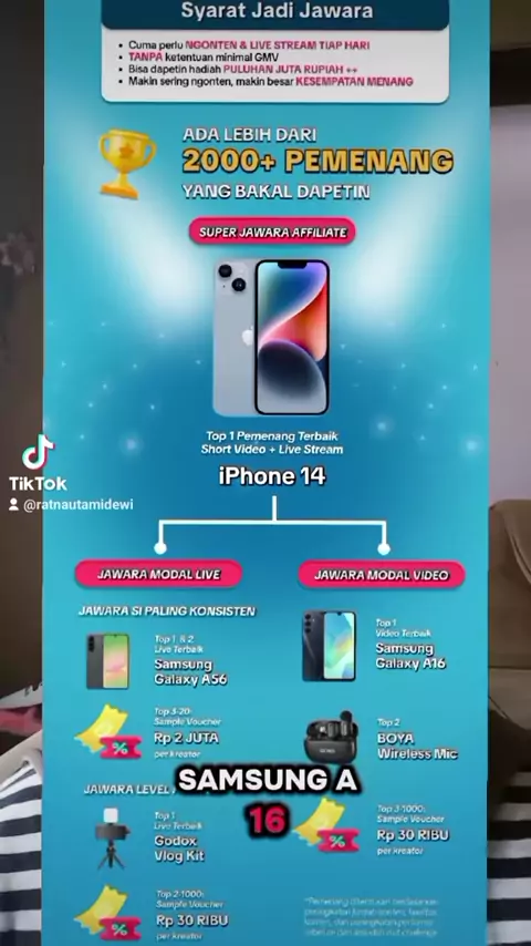 Pastikan ikutan yaaa, tinggal ikuti misi kreator di akun kamu maka kamu udah otomatis ikutan, buat konten sebanyak-banyaknya agar peluang menanggung semakin besar. Sampai jumpa di event terkesan periode september 2025 #modalkontendoang #jawaraaffiliate #satumenitedukasiaffiliate #affiliate #info