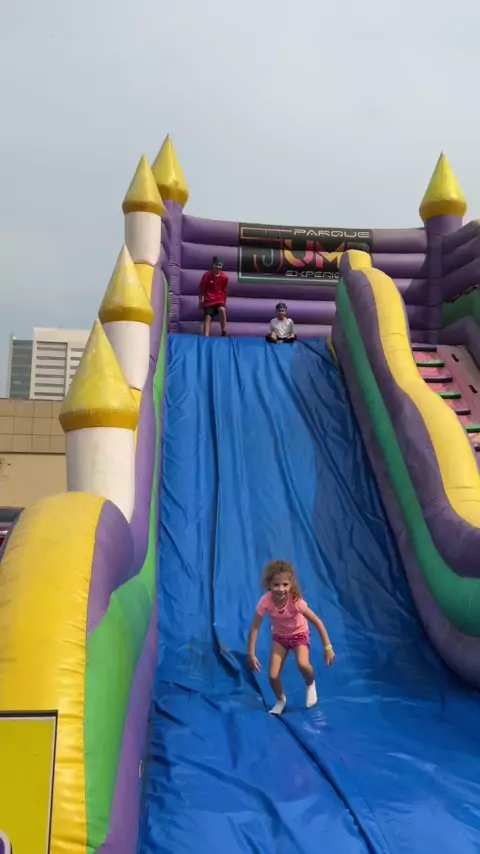 Descendo um escorregador inflável