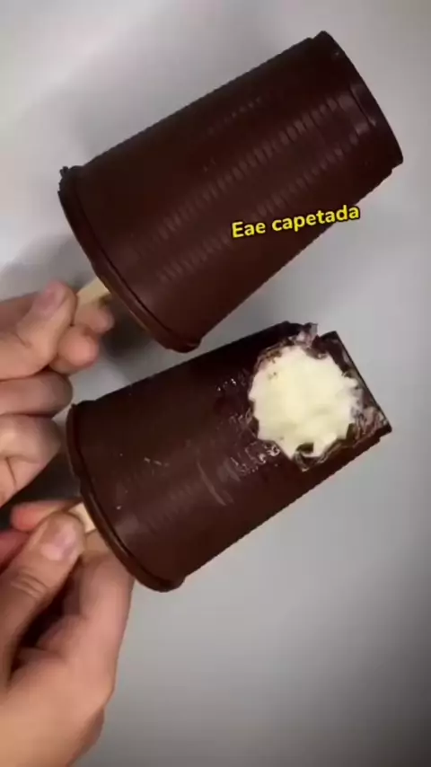 Picolé no copinho ☀️ *Meu copo tem 200 ml *Com duas camadas de chocolate fica bem grosso, pode fazer só com uma, mas corre o risco de rachar Créditos : @receitasbymini #Receita #chocolate #sorvete #picolé #kwai