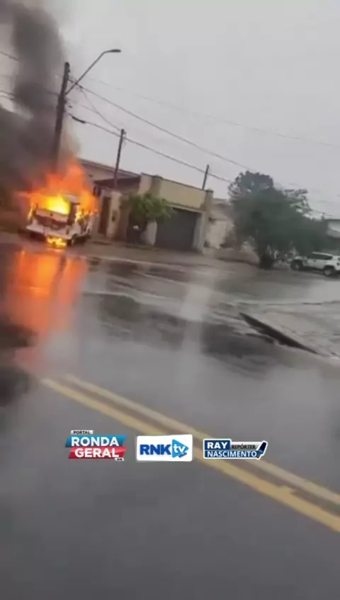 🚨 BRASIL: Uma Kombi em chamas foi flagrada em movimento por uma rua da cidade de Porto União, em Santa Catarina. Sem mais detalhes de momento.