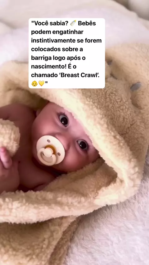 "Você sabia? 🍼 Bebês podem engatinhar instintivamente se forem colocados sobre a barriga logo após o nascimento! É o chamado ‘Breast Crawl’. 👶💛" #babys #Mae #DicaDeMãe #amo