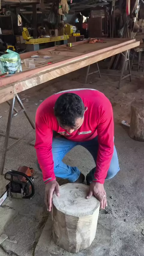 processo em andamento da fabricação de um pilão. #Motosserra #Pilão #TrabalhoRústico #MadeiraBruta #PilãoDeMadeira