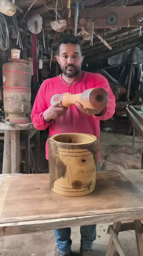 Pilão de madeira de pequi, mão de pilão em sucupira amarela. Madeiras brutas, pesadas e cheias de história. É no vai e vem da mão que nasce a paçoca, que o milho vira farelo, que o alimento ganha sabor de tradição. Mais que ferramenta… é cultura, é raiz, é respeito ao jeito antigo de fazer. #Pilão #MãoDePilão #MadeiraDePequi #Sucupira #ArtesanatoRural