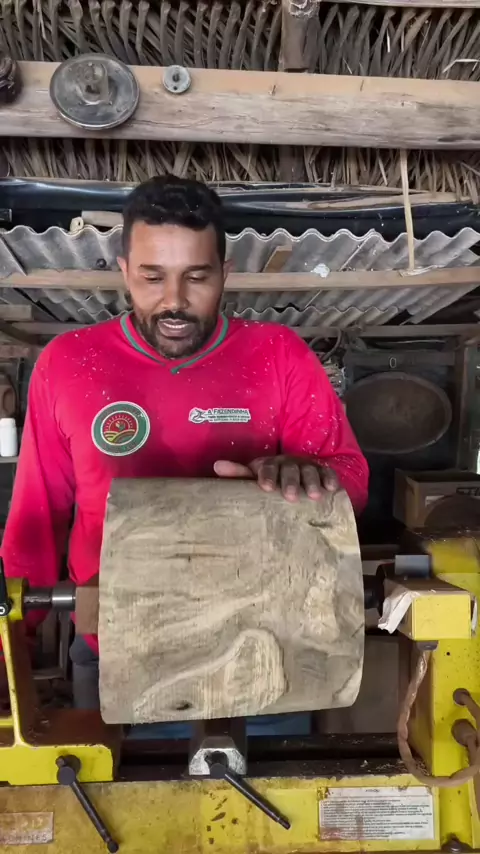 “Parte externa do pilão já torneada, agora a madeira começa a ganhar forma de verdade. Cada giro no torno vai revelando o desenho da peça, tirando excessos e deixando o pilão mais alinhado, firme e pronto para os próximos acabamentos.” #PilãoArtesanal #TornoEmMadeira #MarcenariaRústica #ArtesanatoEmMadeira #FeitoÀMão