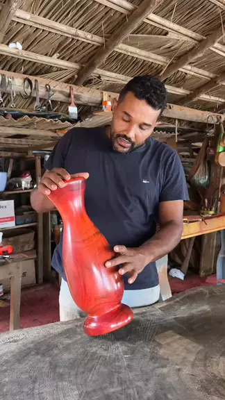 Um simples pedaço de madeira se transforma em um vaso decorativo único. Cada corte, cada detalhe e o acabamento final valorizam os veios naturais e mostram que nada é desperdício — é arte. #descubra #vasodemadeira #decoracaoartesanal #feitoamao #madeiranatural