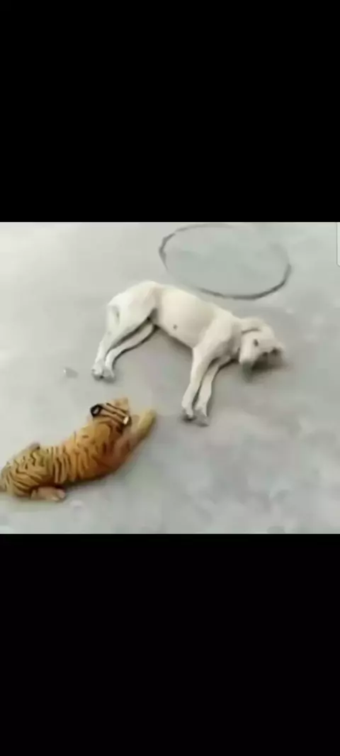 Dog gets scared of fake tiger #funnydogs